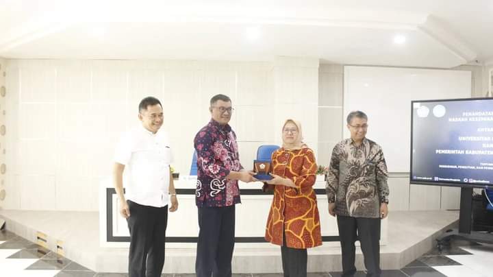 Ket Foto: PJ Bupati Bengkulu Tengah Dr. Heryandi Roni, M.Si dengan Rektor Universitas Bengkulu Dr. Retno Agustina Ekaputri, S.E., M.Sc. Melakukan Penandatanganan MoU diruang Rapat III UNIB.