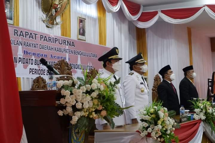 Bengkulu Utara, Pusaranupdate.com – Dewan Perwakilan Rakyat Daerah (DPRD) Kabupaten Bengkulu Utara bersama Forkopimda menggelar Rapat Paripurna dalam rangka Penyampaian pidato Bupati Bengkulu utara Periode 2021-2024, di ruang rapat DPRD BU, Senin (1/03/2021).
