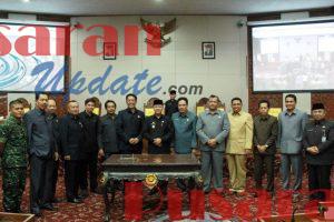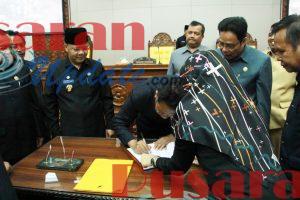 Usai disetujui seluruh anggota Dewan, selanjutnya dilakukan penandatanganan Surat Keputusan DPRD Provinsi Bengkulu, yang ditandatangani oleh unsur pimpinan Dewan dan disaksikan Gubernur Bengkulu, Ketua – Ketua Fraksi serta unsur Forkompnda Provinsi Bengkulu.