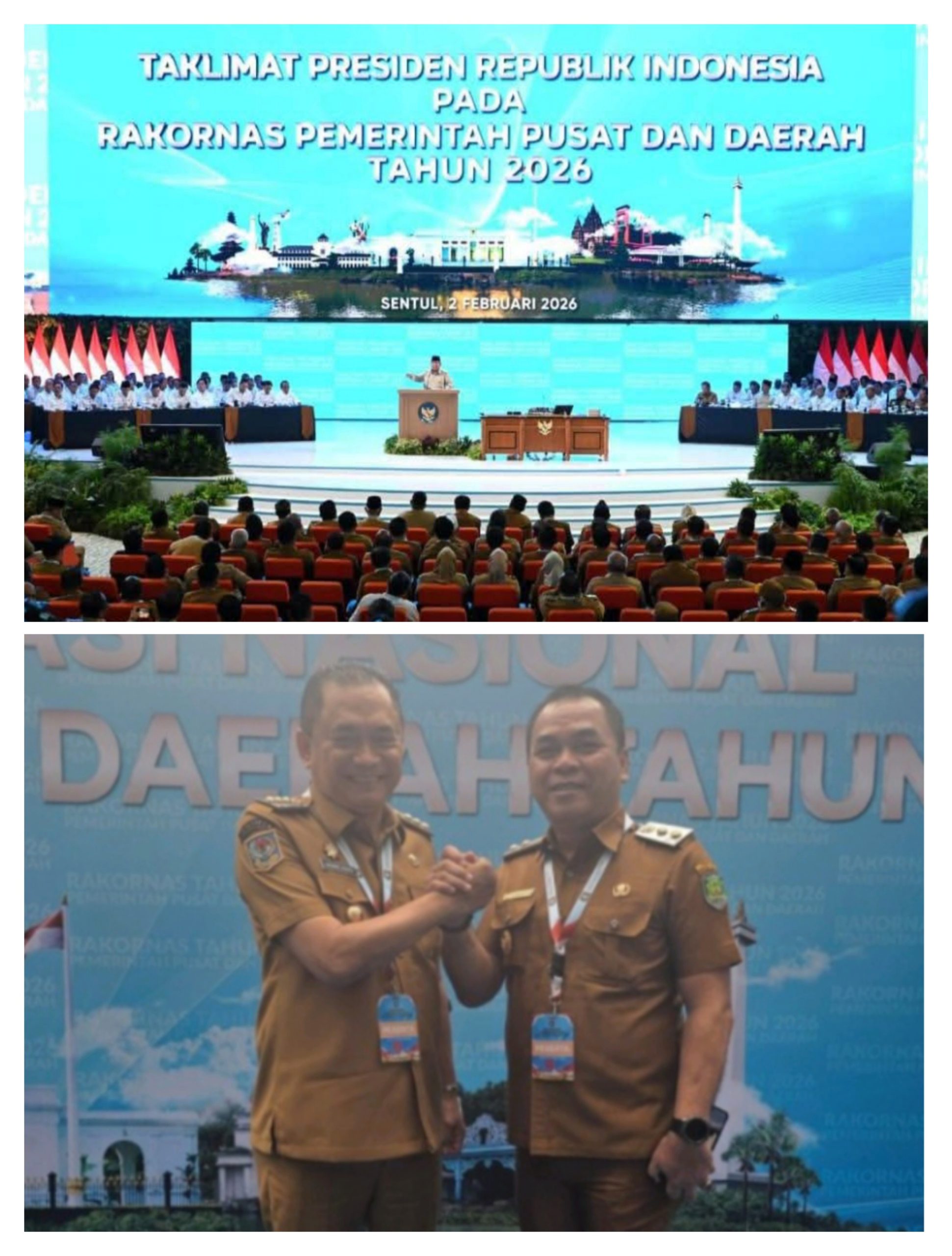 Bengkulu Tengah, Pusaranupdate.com – Bupati Bengkulu Tengah bersama Wakil Bupati serta jajaran Forum Koordinasi Pimpinan Daerah (Forkopimda) Bengkulu Tengah menghadiri Rapat Koordinasi Nasional (Rakornas) Tahun 2026 yang dibuka dan dipimpin langsung oleh Presiden Republik Indonesia Prabowo Subianto bertempat di Sentul Internasional Convention Center (SICC), Kabupaten Bogor. Selasa (2/2/2026).