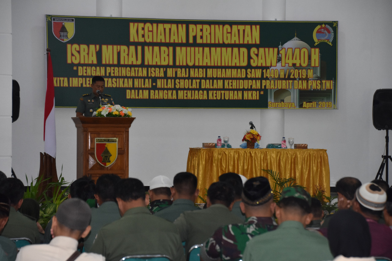 Surabaya, pusaranupdate.com – Peringatan Isra’ Mi’raj di Korem 084/Bhaskara Jaya saat ini, Selasa, 9 April 2019, dinilai menjadi suatu momentum yang sangat tepat guna meningkatkan tali silahturahmi, sekaligus kedisiplinan para prajurit.