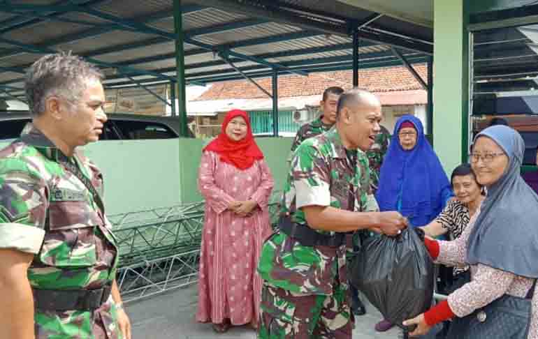 Danramil Simokerto, Mayor Chb Jari Sumarto mengatakan, pembagian sembako itu dilakukan langsung di halaman Makoramil.