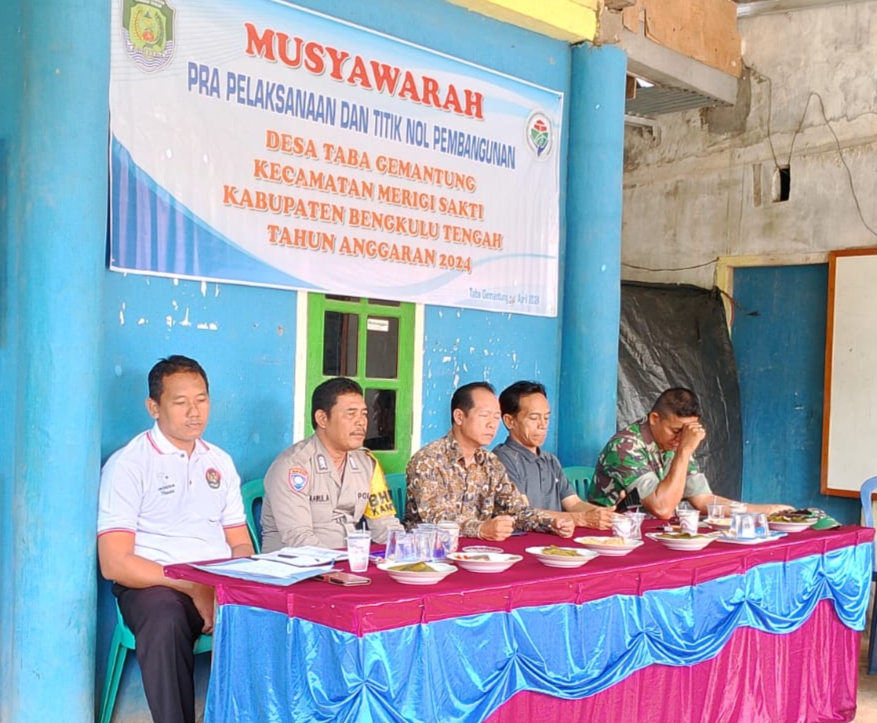 Bengkulu Tengah, Pusaranupdate.com -Pemerintah Desa (Pemdes) Taba Gemantung Kecamatan Merigi Sakti kabupaten Bengkulu Tengah Provinsi Bengkulu Menggelar Acara Musyawarah Desa (MusDES) Pra Pelaksanaan titik nol Pembangunan Jalan Usaha Tani (JUT) dan Ketahanan Sekaligus Pembagian Bibit Ika lele serta Unggas Kepada Masyarakat Kurang Mampu, Kegiatan Tersebut Berlangsung di Kantor Desa, Jumat (26/4/2024).
