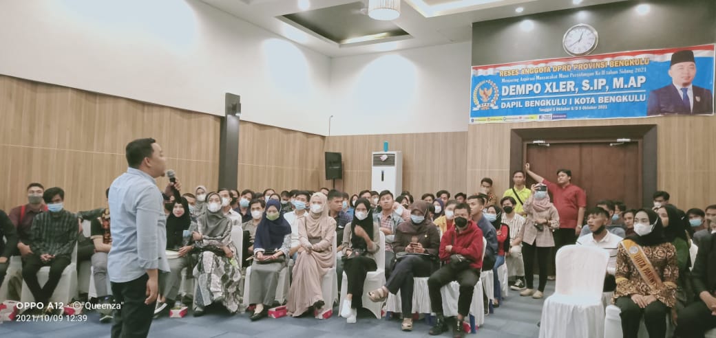 Bengkulu, Pusaranupdate.com – Anggota DPRD Provinsi Bengkulu Dapil I Kota Bengkulu Dempo Xler S.IP, M.Ap mengelar Reses Menyerap aspirasi anak muda di Kota Bengkulu. Kegiatan ini berlangsung di Hotel Jodipati dilaksanakan mulai Tanggal 5 s/d 9 Oktober 2021.