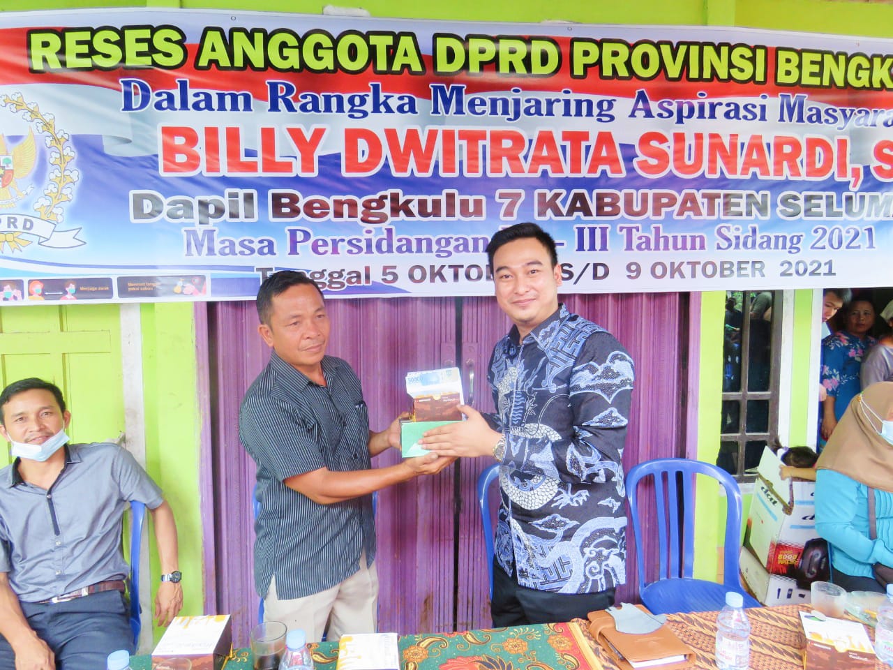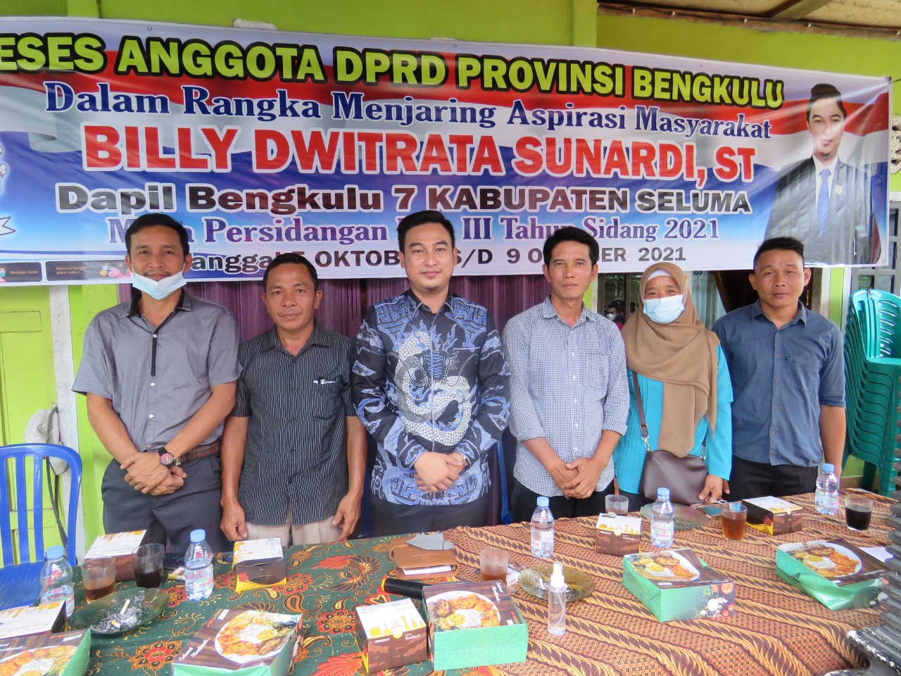 Bengkulu, Pusaranupdate.com – Dalam rangka menjaring aspirasi masyarakat Anggota DPRD Provinsi Bengkulu Billy Dwitrata Sunardi ST, Daerah Pemilihan (Dapil) VII Masa Persidangan III Tahun 2021 Kabupaten Seluma diantaranya Desa Kayu Elang , Desa Gunung Megang dan Desa Mekar Sari Mukti, Desa Renah Gajah Mati, Desa Rantau Panjang Kecamatan Semidang Alas reses Tersebut dilaksanakan Mulai Tanggal 5 s/d 9 Oktober 2021.