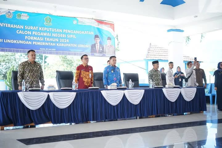 Lebong, Pusaranupdate.com – Pemerintah Kabupaten Lebong resmi menyerahkan Surat Keputusan (SK) kepada 381 Calon Pegawai Negeri Sipil (CPNS) dalam sebuah acara yang digelar di Pendopo Rumah Dinas Bupati Lebong. SK tersebut diserahkan langsung oleh Bupati Lebong, Azhari, S.H., M.H.