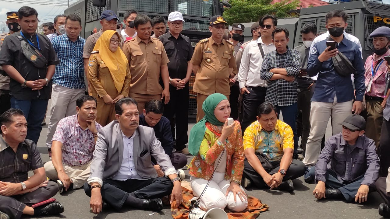 Wakil Ketua III DPRD Provinsi Bengkulu Erna Sari Dewi bersama anggota DPRD lainnya ikut turun kejalanan melihat langsung aksi demo mahasiswa organisasi Kammi