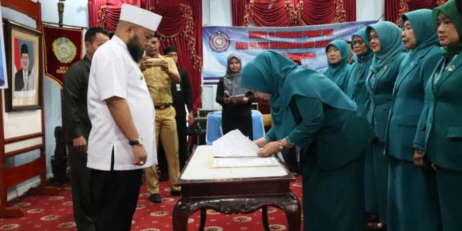 Kota Bengkulu, pusaranupdate.com – Walikota Bengkulu Helmi Hasan melantik dan mengukuhan Tim Penggerak (TP) PKK Periode 2018-2023 di Balai Kota, Senin (21/1/2019).