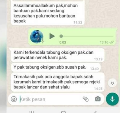 Tak berselang lama, Helmi langsung merespon laporan tersebut dengan meneruskan pesan ke Badan Amil Zakat Nasional (Baznas) untuk segera menindaklanjutinya dan membantu Imas yang sedang dikabarkan terkendala tabung oksigen.